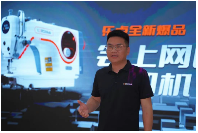 浙江乐点总经理沈敏辉在发布会带来了全新的乐点20系列缝纫机。
